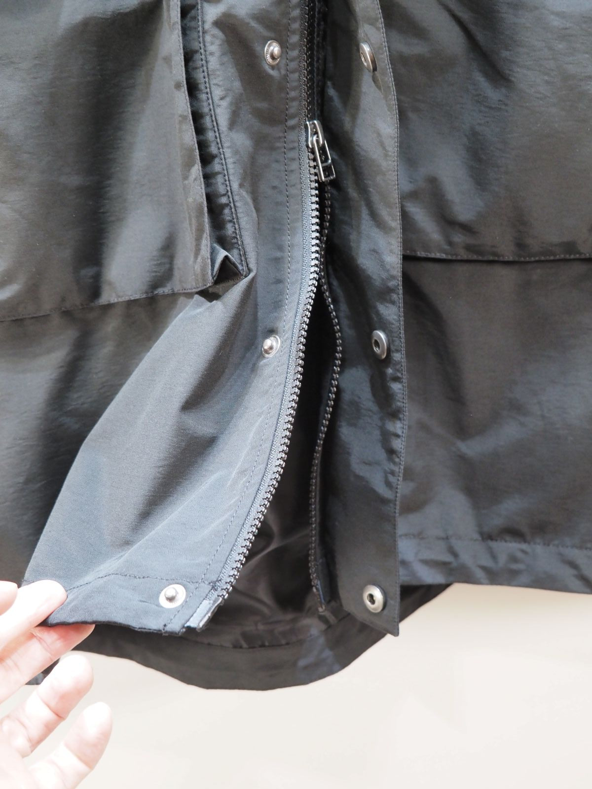 往年のアウトドアウェアに用いられる コットン60% ナイロン40% という混紡比率の生地を使用し さらにテフロン加工を施して 撥水性能をたかめた生地です